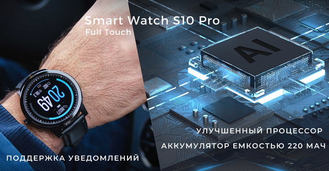 Smart Watch S10 Рro – багатофункціональний, водонепроникний смарт-годинник з надійним каучуковим ремінцем і безліччю корисних функцій та додатків. Розумний годинник з яскравим AMOLED дисплеєм забезпечує швидкий доступ до популярних функцій та актуальної інформації. Спортивний смарт-годинник не боїться попадання води, оскільки оснащений підвищеним ступенем пилу і вологозахистом (IP 68). Гаджет синхронізується із пристроями на базі IOS та Android, підтримка Bluetooth 5.0.