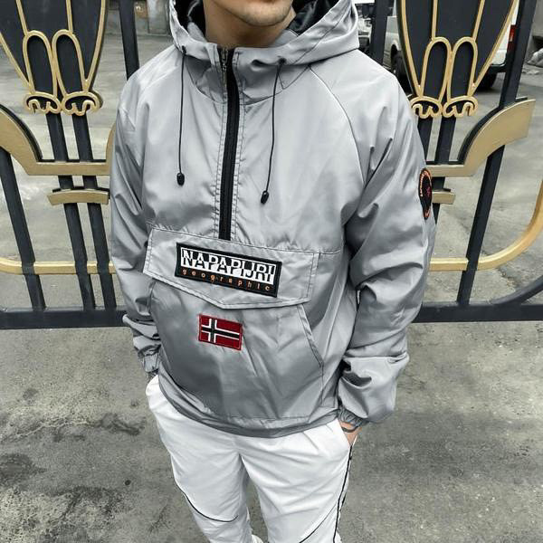 Чоловіча куртка демісезонна Napapijri сіра чоловічий анорак вітровка сірий
