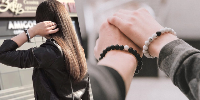 Парні чоловічі жіночі браслети з натурального каміння, кам'яні для двох з агату
